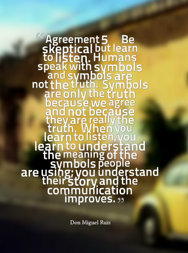 (He later published another gem called The Fifth Agreement which can be added to the first four – Be Skeptical, But Learn to Listen.)