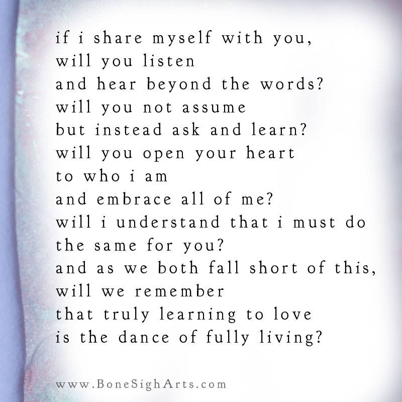 Terri St. Cloud from the beautiful Bone Sigh Arts recently posted this on Facebook and it is beautifully said and hauntingly accurate. It reminds us that we learn love as we go. We all make mistakes, too.