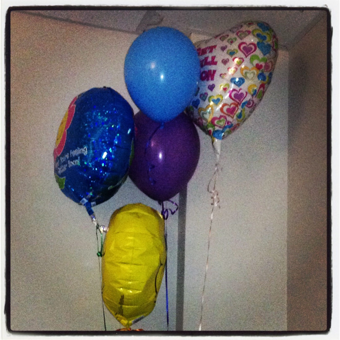 Then began the string of visitors who were able to come by the hospital where I spent the next four days. It was so sweet. You arrived with balloons, flowers, smoothies, lip balm, food, cards, hugs and smiles.