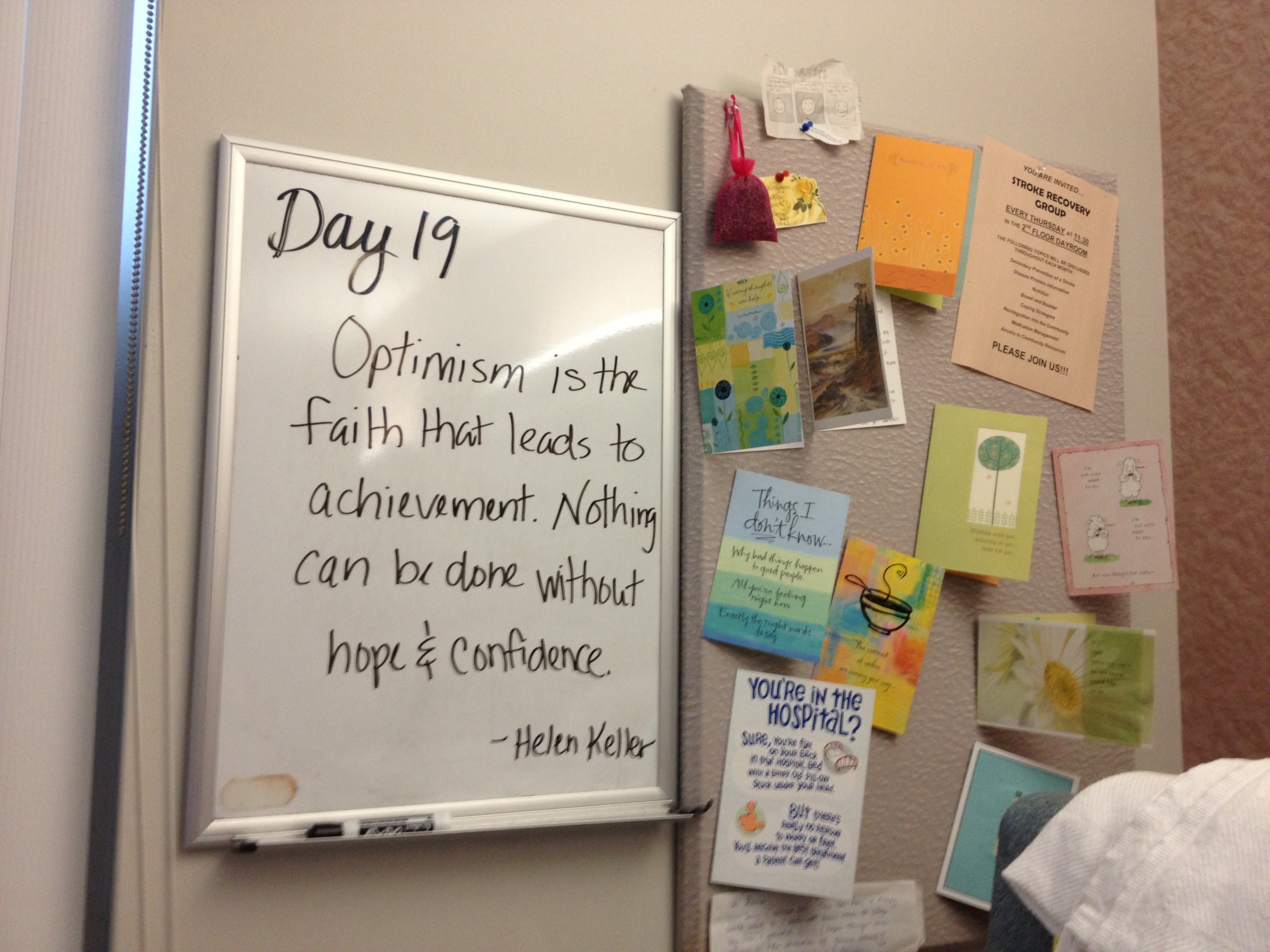 After the hospital I was sent to Health South, the rehabilitation center. I was told on that first afternoon that I’d likely be there for three or four weeks.