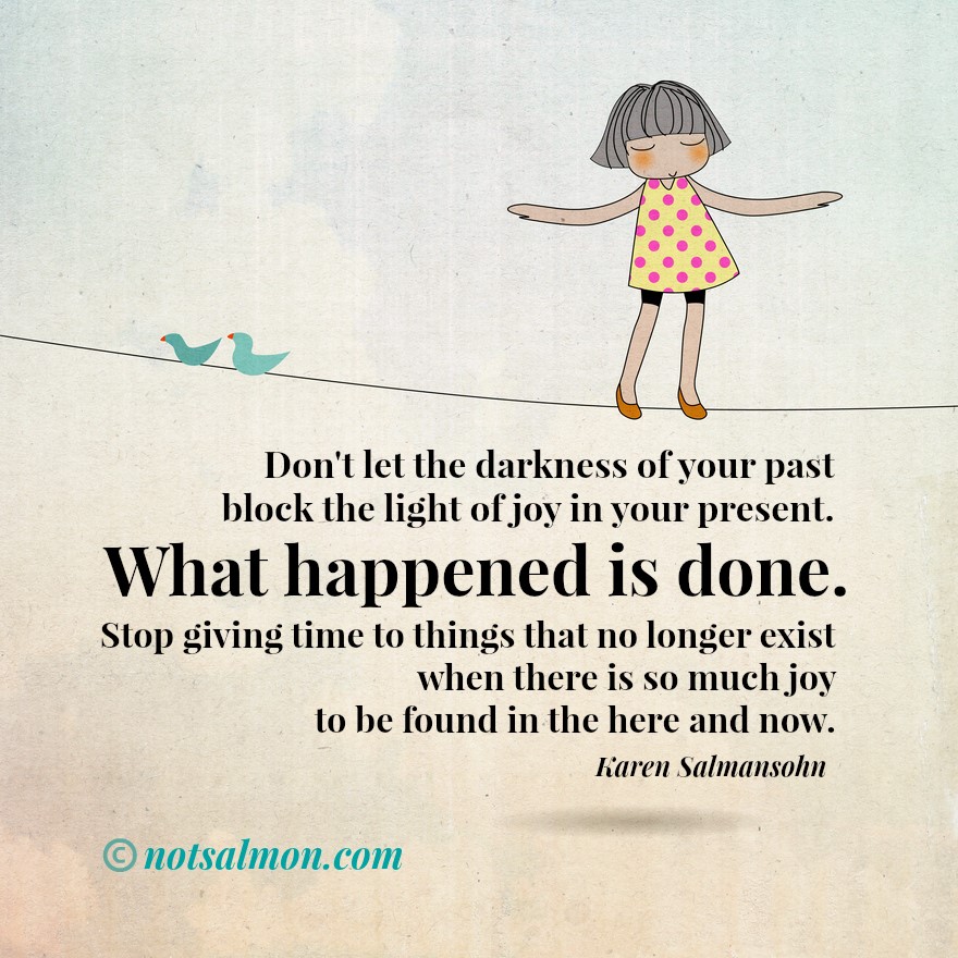 I am a big fan & “Like” her Facebook page, but it has been totally uncanny some days when one of Karen Salmansohn’s illustrated quotes has randomly showed up on my FB newsfeed…and then it’s just the thing, I mean the exact thing that I needed to be reminded of right at that moment.