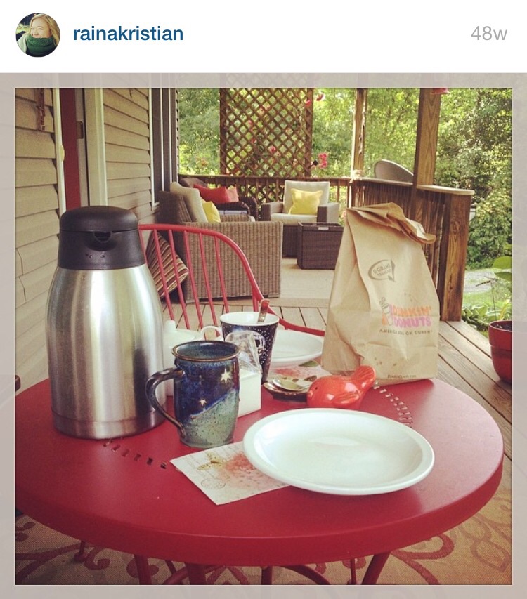 And I enjoy sharing a cup of coffee on our front covered porch any day of the week. It’s a truly lovely spot to dwell in, especially during one of the many thunder storms of late.